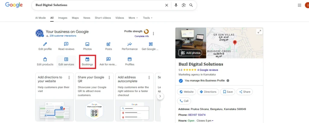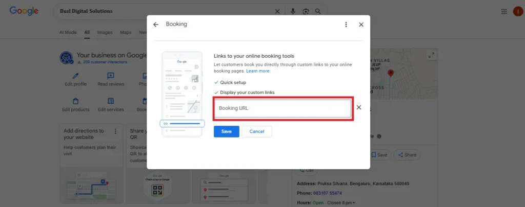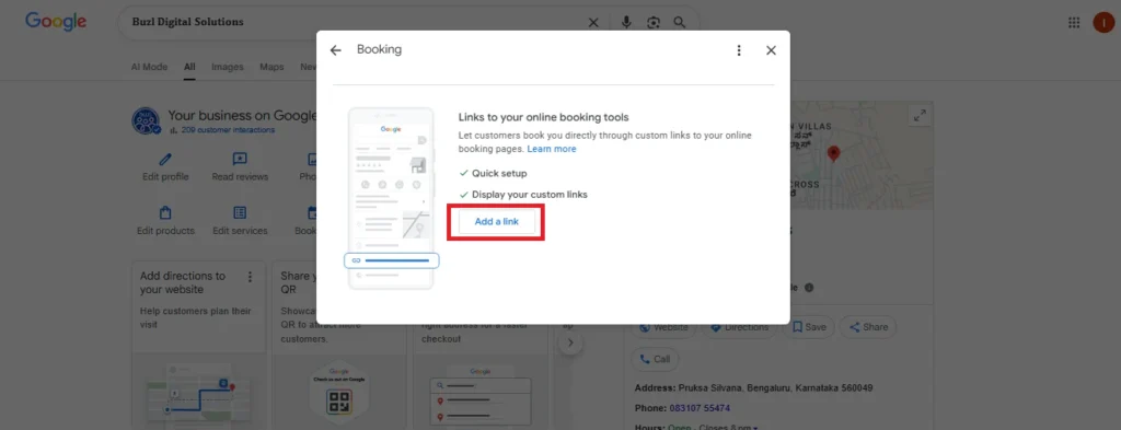 By linking your online booking tool to Google Business Profile, you can enhance customer convenience and improve conversion rates. The “Booking” feature enables users to book directly through Google, making your business more accessible and streamlined for potential customers.