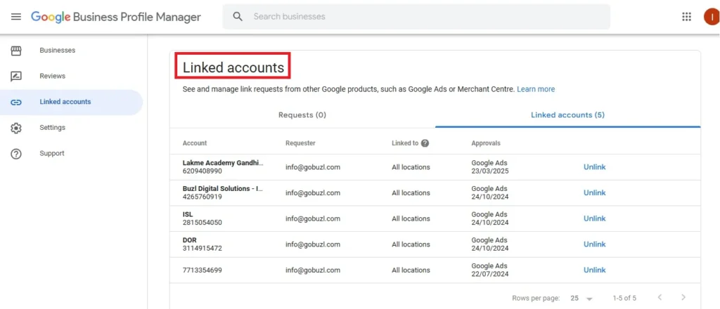 This section allows you to manage user roles and permissions for those who access and manage your Google Business Profile, providing a secure and organized digital marketing agency environment.