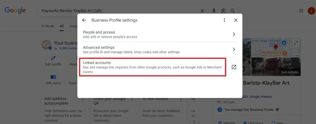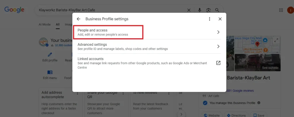 The Business Profile Settings menu provides access to essential options that help you manage your Google Business Profile effectively. The settings allow you to control various aspects of your profile, such as user access, linked accounts, and advanced settings. Here’s a detailed breakdown of the options available: