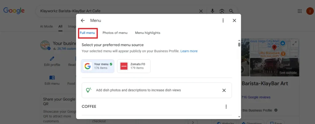 A well-maintained Google menu provides accurate, organized information that helps potential customers make decisions without needing to visit your website or call your business. Whether you offer food, salon treatments, or digital services, your menu helps you: